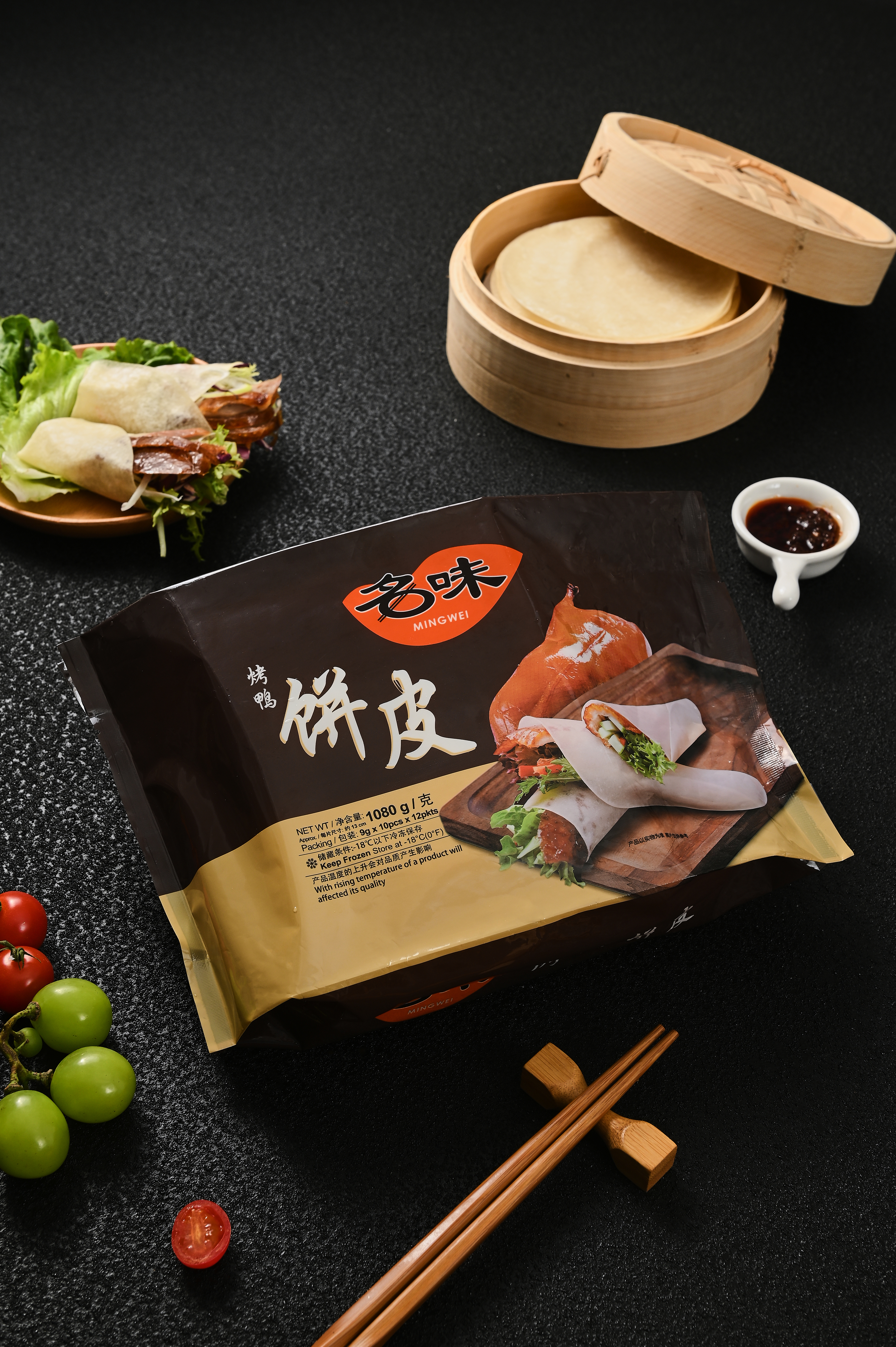 专为中式烤鸭与创意卷食而生,精选优质小麦粉与纯净水源,经传统发酵灵感与现代工艺精制而成。柔韧有劲,轻轻一扯拉丝不断,包裹烤鸭的丰腴油脂与葱丝黄瓜,入口先触麦香,再品肉香,层次分明却不腻口,堪称中式卷饼的“黄金搭档”。包装规格:9克X120片X10包